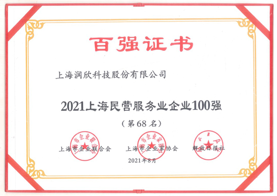 2021年8月26日,由上海市企業聯合會、上海市企業家協會、上海市經濟團體聯合會、解放日報社聯合主辦的2021上海百強企業發布會在上海召開。潤欣科技憑借雄厚的綜合實力和卓越的業績增長表現,榮獲2021上海民營服務業企業百強第68名,2021上海新興產業企業百強第69名。